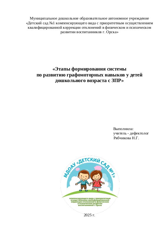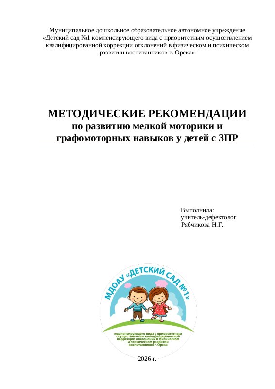 «Методические рекомендации по развитию мелкой моторики и графомоторных навыков у детей с ЗПР»