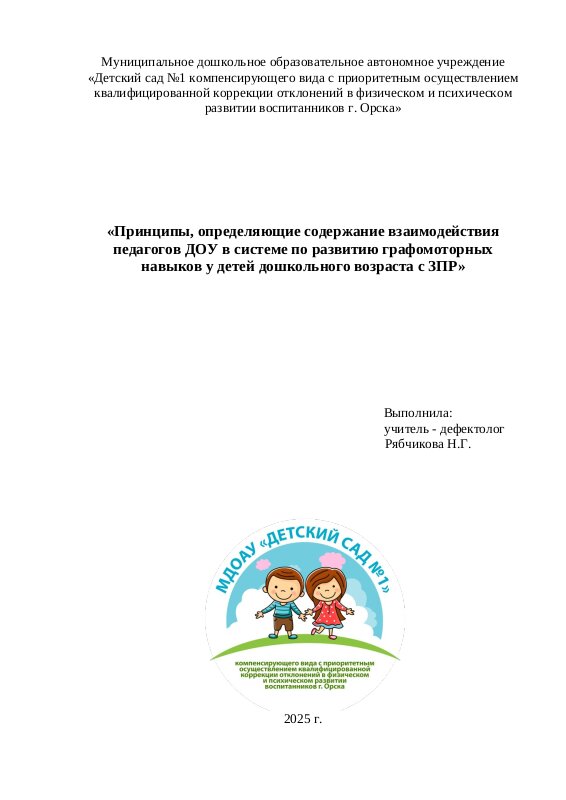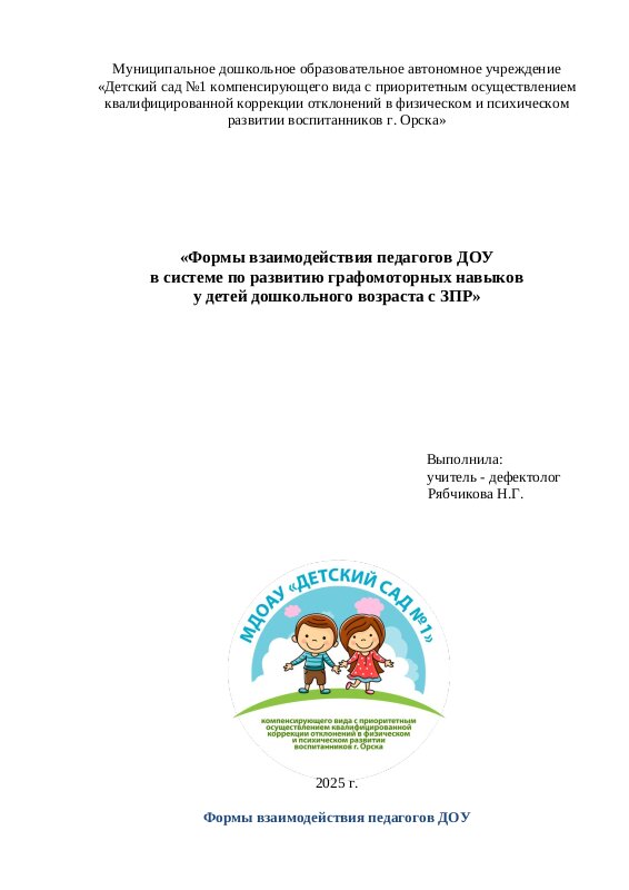 «Формы взаимодействия педагогов ДОУ в системе по развитию графомоторных навыков у детей дошкольного возраста с ЗПР»